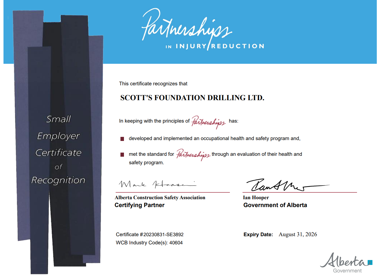 Since 1998, Scott’s Foundation Drilling has completed over 20,000 jobs across Alberta. From residential to industrial builds, we deliver reliable, code-compliant pile drilling that stands the test of time.